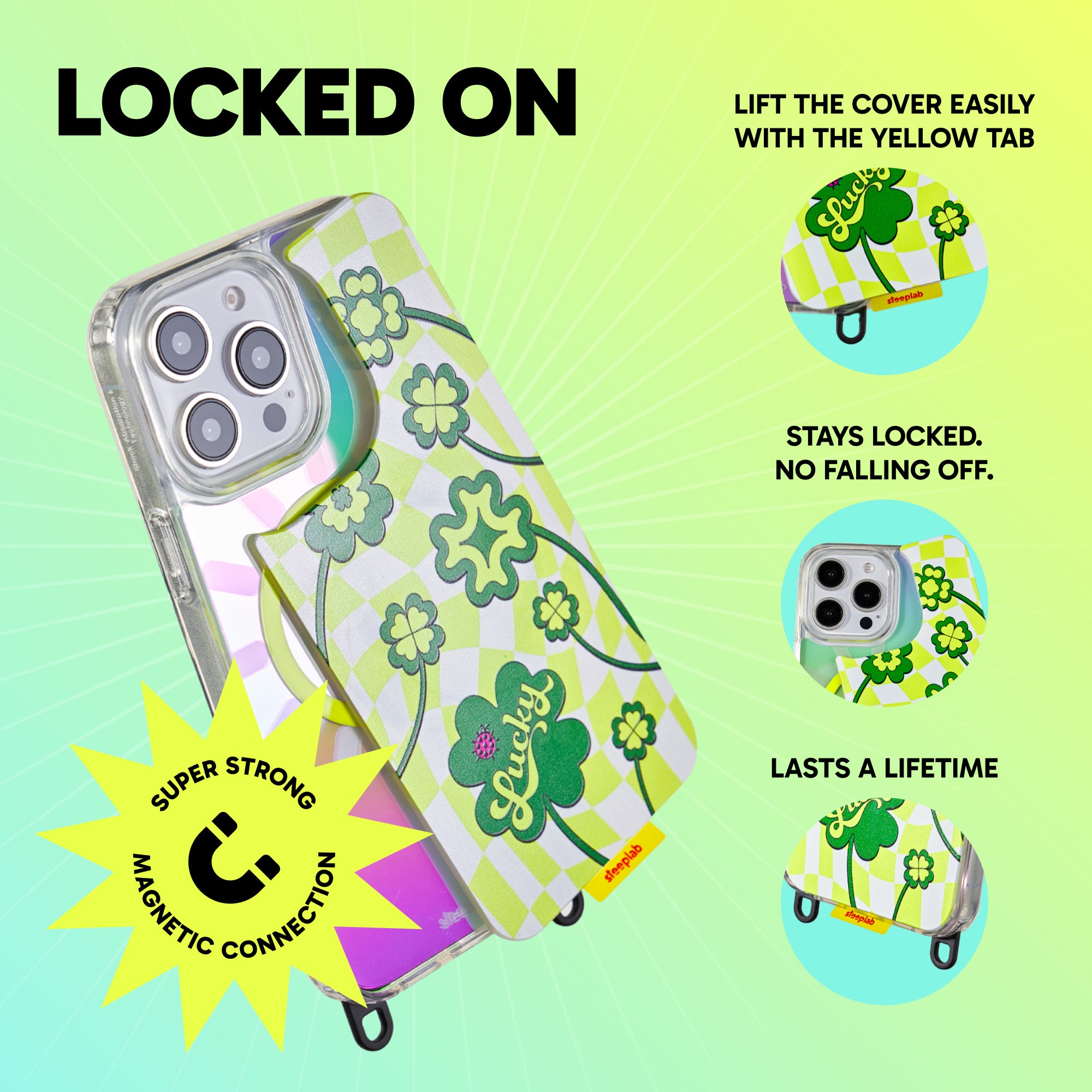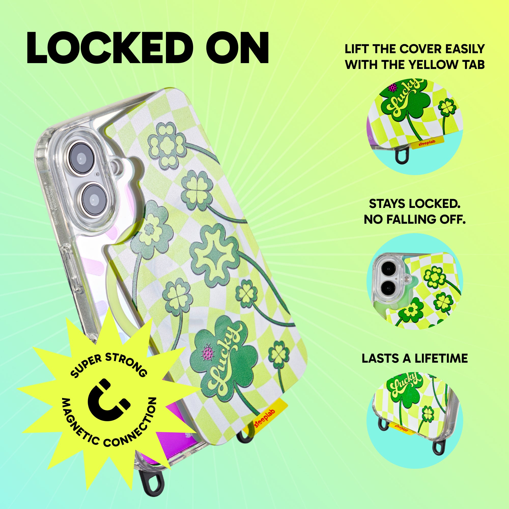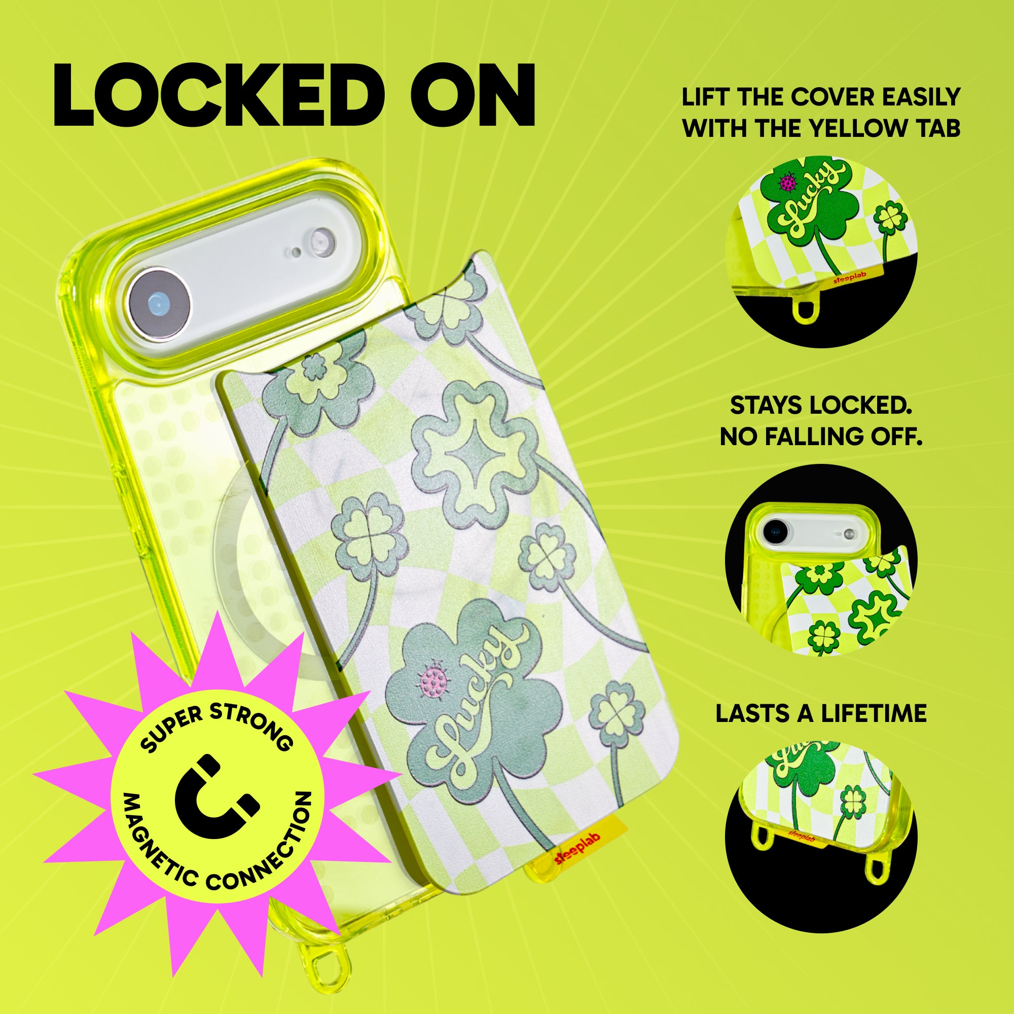 The case stays on. Future designs switch in seconds. No tools, no bulk, no friction.