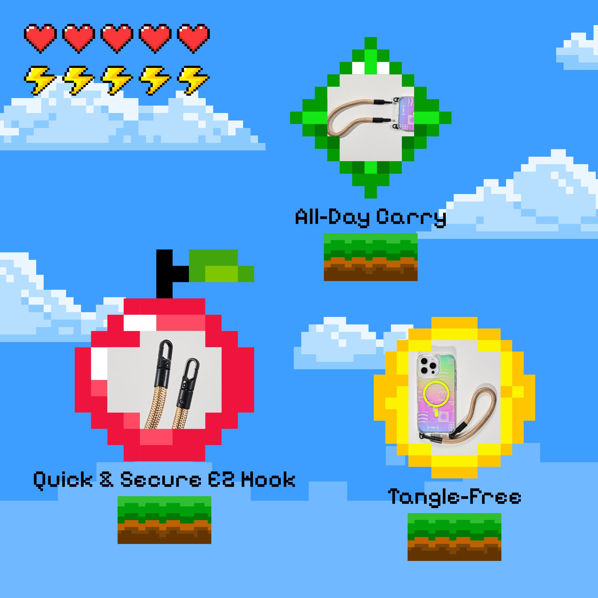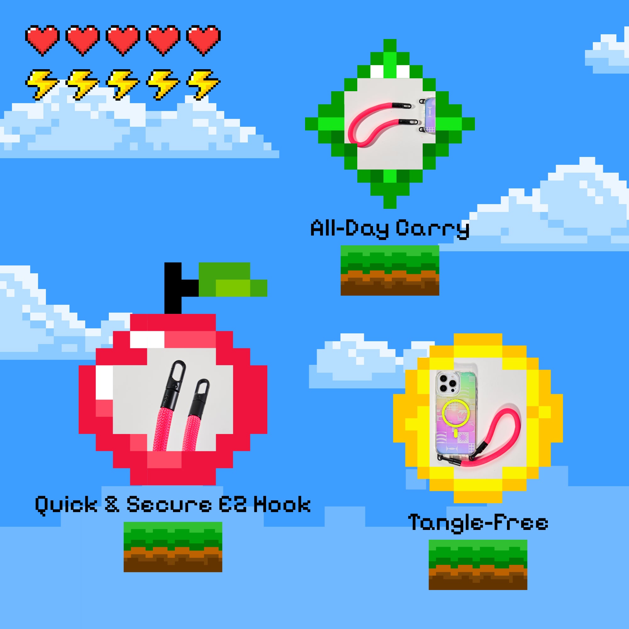 Norks with most phone cases using a phone tab or built-in hook system. Simple